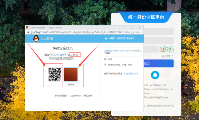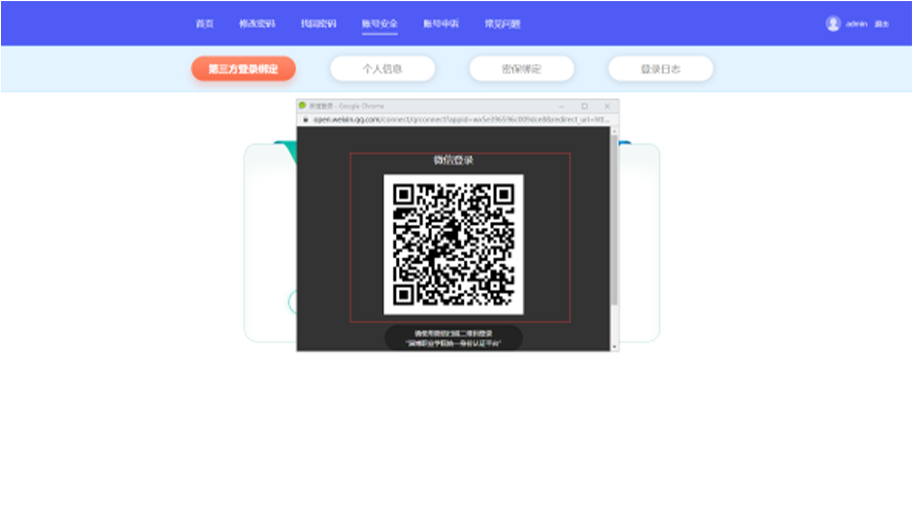 完成微信绑定后,就可以在登录页面,通过手机微信扫描二维码进行登陆。
