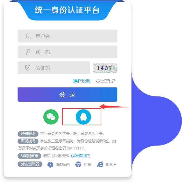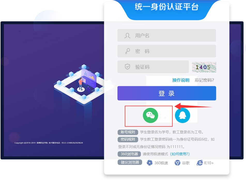 使用手机微信扫描二维码后即可登录,但是微信扫描二维码的登录操作,需要事先绑定个人微信, 若事先未绑定微信则会显示未绑定页面。