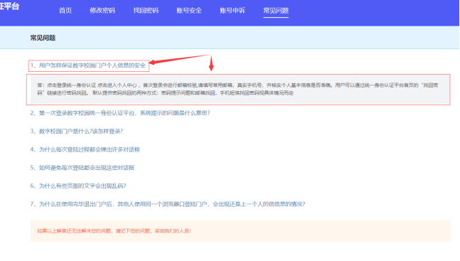 在此页面中用户可点击不同的问题,点击后则会显示问题相对应的答案。