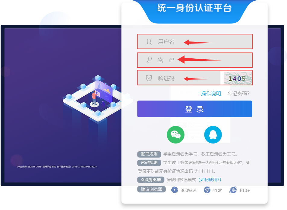 普通登录只需要输入用户名、 密码、 验证码信息,然后点击登录, 即可登录。